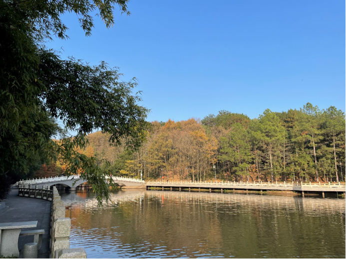 午餐过后,开启秋游第二站——九真山。秋日的阳光照射下来,大家有说有笑,神采飞扬。上山途中需连续走300级台阶,面对这一“天梯”,退休教师们个个精神矍铄,不畏困难,登上了顶峰。下山途经玻璃栈桥,教师们不畏高空的恐惧,走上了栈桥,俯瞰美景。走在连理湖的林荫小道上,退休教师们一边饱览美丽的景色,一边话家常,脸上洋溢着笑容。宜人的气候、美丽的风景、清新的空气,让参加活动的老教师们心情愉悦,度过了快乐的一天。