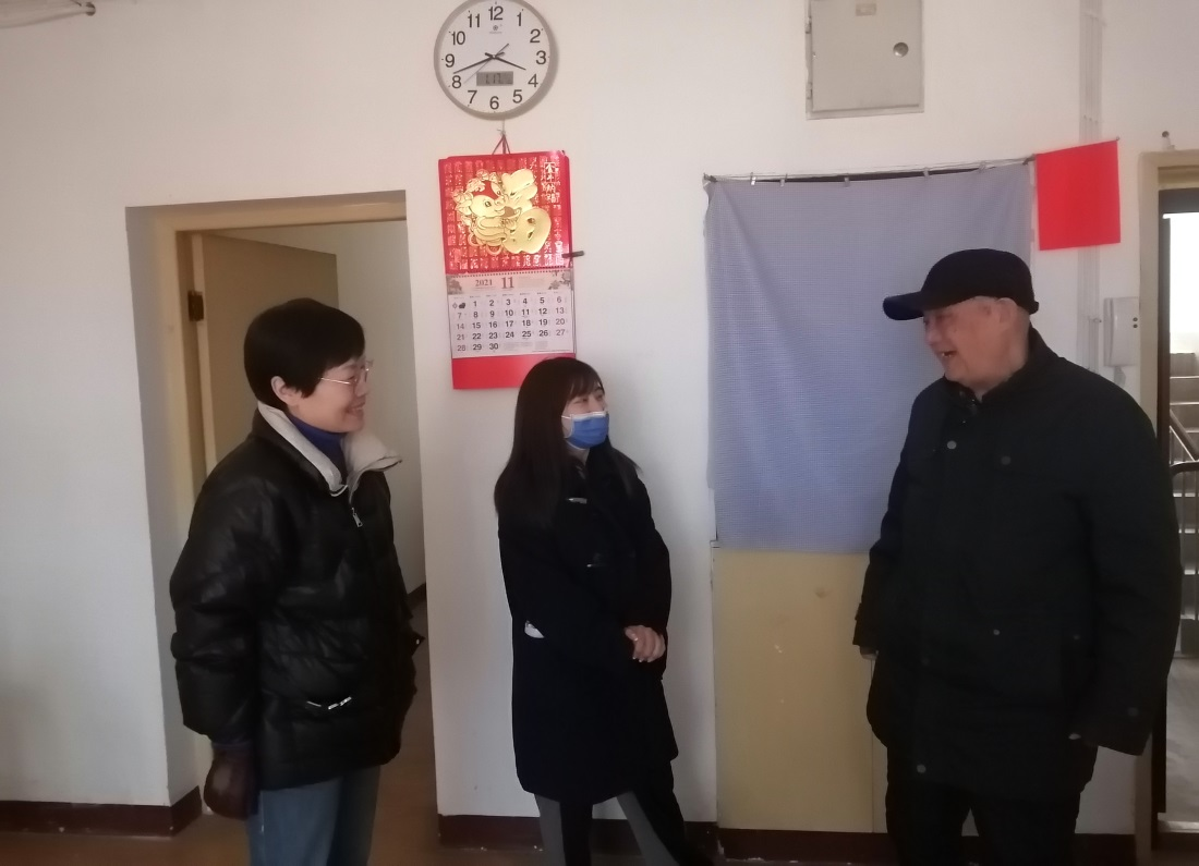 周处长和退休党支部书记程翠英一行拜访了住在校外的陶笑虹和庞子朝老师。