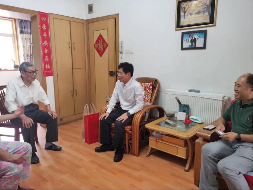 (通讯员赵娜)10月4日,九九重阳,又逢国庆,节日气氛浓厚。校党委副书记、纪委书记陈厚丰与纪委副书记、纪委办公室主任、监察处处长寇富安、巡察办副主任杨帆及办公室工作人员,前往北区家属宿舍区看望慰问纪委办退休老干部望作定及其家属,为他们送去节日的祝福和问候。