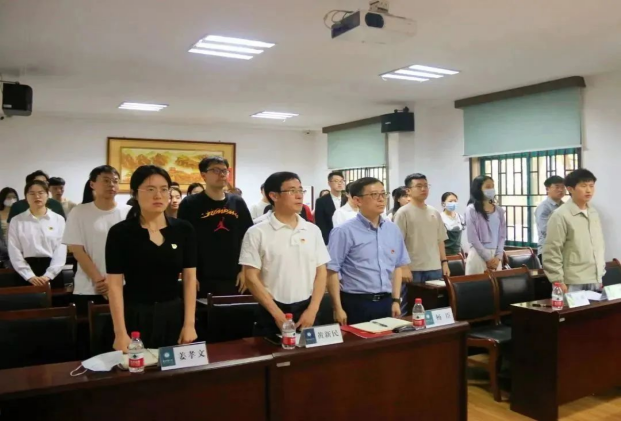 为深入开展习近平新时代中国特色社会主义思想主题教育,5月19日,法学院于104会议室举行2023年上半年新发展预备党员集中入党宣誓仪式,学院党委书记杨臣,退休教师党员代表黄新民,宣传干事、团委书记张永基,法学院本科党支部书记、团委副书记姜孝文出席仪式,学院党委副书记万枞主持。学院2023年上半年新发展预备党员、研究生党支部书记、入党积极分子代表参加。
