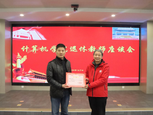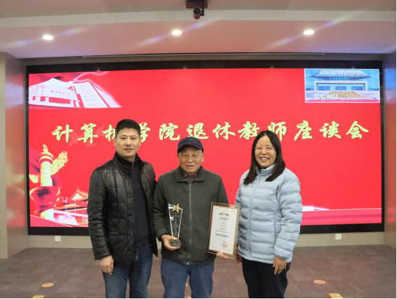 会议伊始,王坤书记、何婷婷教授等分别为胡金柱教授颁发武汉计算机软件工程学会终身学术成就奖,为程翔章、胡金柱老师颁发“先进老人奖”。与会人员对获奖退休教师表示热烈的祝贺。