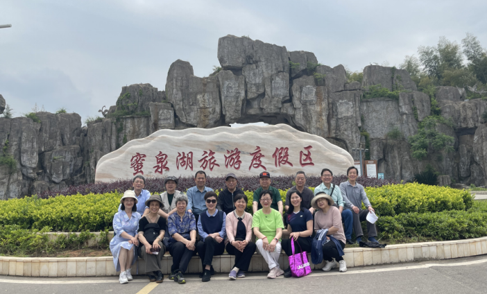 四月,春风不燥,微风正好,正是踏春出行的好时节。为丰富我院离退休老师的晚年生活,历史文化学院在4月24日组织了一年一度的春游活动。这天一早,近二十名老师集合完毕,整装待发,前往咸宁市的官桥村和蜜泉湖赏春游玩。