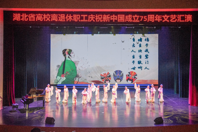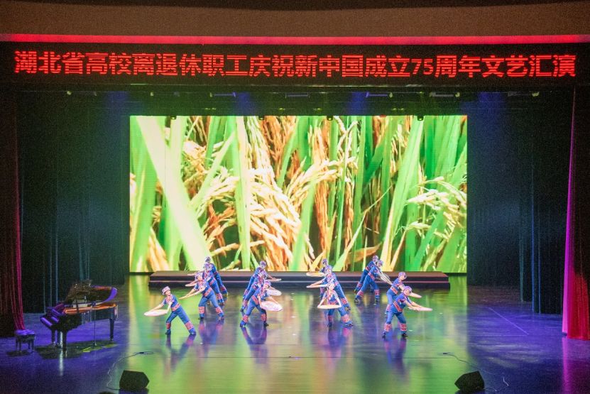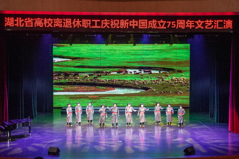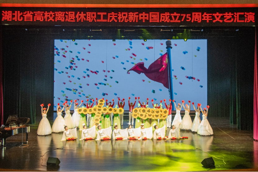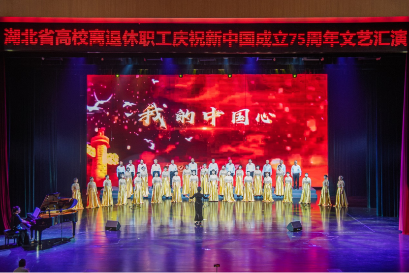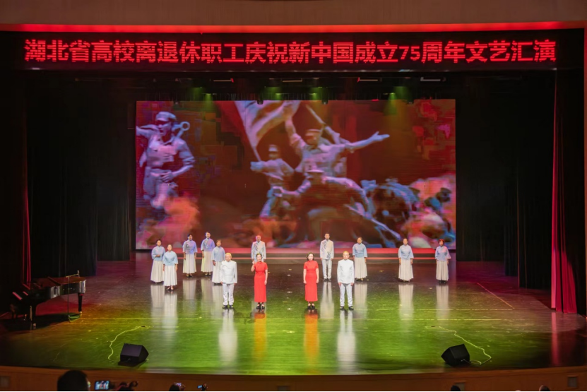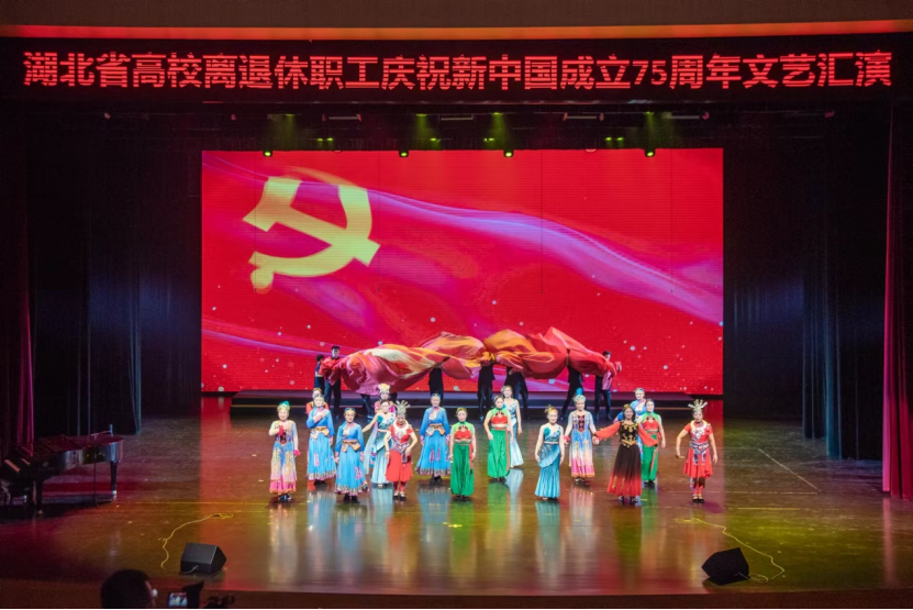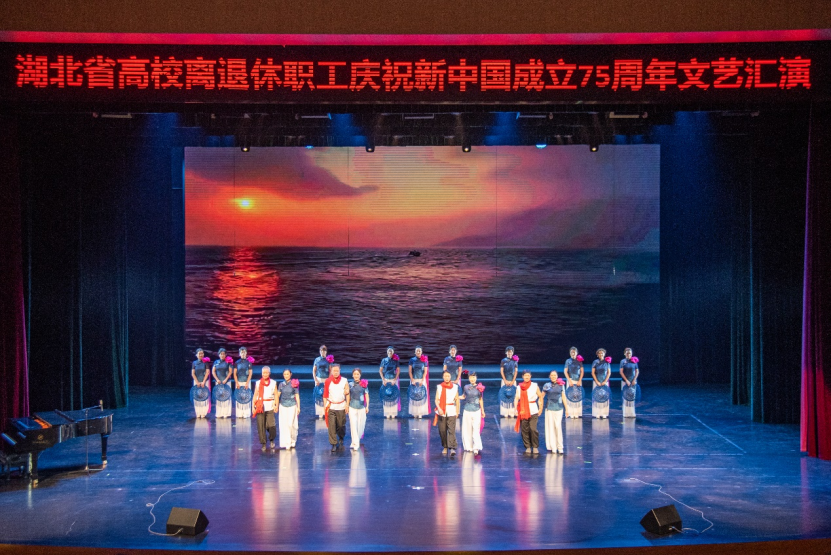 本场文艺汇演既有气势磅礴的合唱,又有激情奔放的民族乐曲,引来观众阵阵掌声。各高校离退休老同志立足高标准,精益求精,倾情演出,载歌载舞、精彩纷呈,用实际行动践行热爱共产党、热爱祖国、热爱美好生活,展现了湖北高校离退休老同志们用心用情用功抒写伟大时代,以讴歌党、讴歌祖国、讴歌人民、讴歌英雄的文艺作品为新中国成立75载辉煌历程深情献礼,为高校文化建设汇聚强大的精神力量。