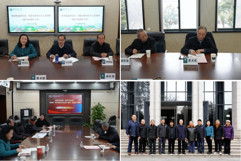 1月8日,教育部关工委副主任兼秘书长张文忠,湖北省教育厅关工委主任孟庆金一行来我校调研关工委工作。调研座谈会在行政楼三楼会议室召开,会议由离退休工作处处长何小红主持,校党委副书记查道林出席调研座谈会,校关工委常务副主任谭根稳、校关工委秘书长朱斌,校老教授协会副会长向三久、校离退休工作处副处长田维斌、马克思主义学院党委副书记邵莉莉、校关工委办公室主任曾爱华等参会。