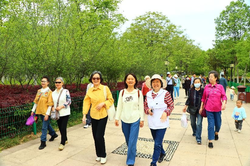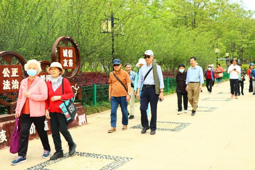 首站抵达国家4A级景区鄂州西山风景区。西山古称樊山,因位于吴王古都鄂州之西而得名,主峰海拔170米,全山植被覆盖率达98%,满山苍翠,气候宜人,素有“楚门东户”之誉。老师们漫步于郁郁青青、鲜花盛开的西山风景区,时而驻足赏景,时而三五结伴而行,步履轻盈如少年。游玩中老师们互相用手机定格相视而笑的瞬间,笑声中更显“银发初心”的炽热。