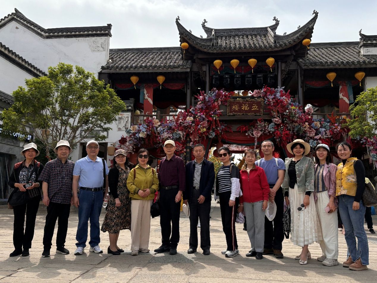 4 月 17 日,信息管理学院十余位退休老教师在学院教师薛莲、杨小溪、王丹的陪同下,前往云梦祥云湾文旅景区、湖北博物院云梦分馆,开启了一场充满温情与回忆的春日游览之旅,在古色古香的景致中,共叙往昔情谊。