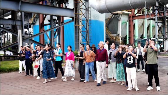 穿过现代化的厂区通道,巍峨的一号高炉赫然矗立,斑驳的炉身镌刻着半个多世纪的工业记忆——这里曾见证新中国钢铁工业的崛起,每一寸钢铁都承载着“百炼成钢”的奋斗精神。“大家现在看到的一号高炉,自1958年投产以来,累计产钢超3000万吨,相当于为国家打造了近20座长江大桥的用钢量!”随着讲解员的介绍,学员们的目光紧紧锁定在高炉主体上:巨大的炉口、整齐的管道,昔日“钢花四溅”的生产场景仿佛在眼前浮现。学员们认真聆听,从上辈人的铁锹到下辈人的鼠标,从“一炉钢水”支撑国家建设到绿色低碳转型的新探索,一个个鲜活的故事、一组组震撼的数据,让大家感受到兴奋和荣光。“今天才算真正看懂了‘钢铁是怎样炼成的’!”一位学员难掩激动说道。不少学员表示,“这比坐在教室里听课更生动,既长见识又开眼界,这样的活动我们太喜欢了!”此次参观不仅让大家近距离接触了工业重器,更从一号高炉的“钢铁精神”中感受到了时代的力量,为老年大学生活增添了一份厚重的记忆。