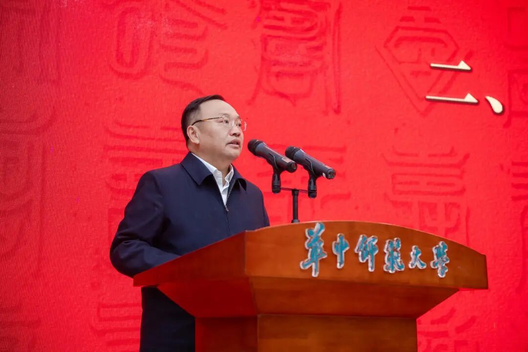 夏立新在致辞中代表学校向全体寿星致以诚挚问候和节日祝福,感谢他们为学校发展倾注心血、作出贡献。“尊老敬老爱老是重阳节最厚重的文化底色,也是中华民族源远流长的优良传统。回望学校122年的奋斗历程,我们深切地感受到,今天学校各项事业蓬勃发展的良好局面,离不开一代又一代老同志、老前辈的筚路蓝缕、呕心沥血。”他表示,当前学校迎来发展新阶段,期盼老同志一如既往地为学校的改革发展建言献策、共同擘画华师更加辉煌的明天。学校党委将始终把离退休工作摆在重要位置,持续弘扬尊老敬老爱老助老的良好风尚,用心用情、精准精细地做好服务保障,努力让每一位老同志都能安享幸福晚年。