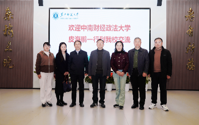 2025年11月25日下午,中南财经政法大学离退休工作部部长皮海鹏一行5人莅临我校,围绕老年大学办学、校院两级管理体制及党建与关工委工作开展深度交流。我校离退休工作处处长何小红、副处长田维斌、工作人员张春江陪同座谈交流,就各项工作情况进行详细介绍。