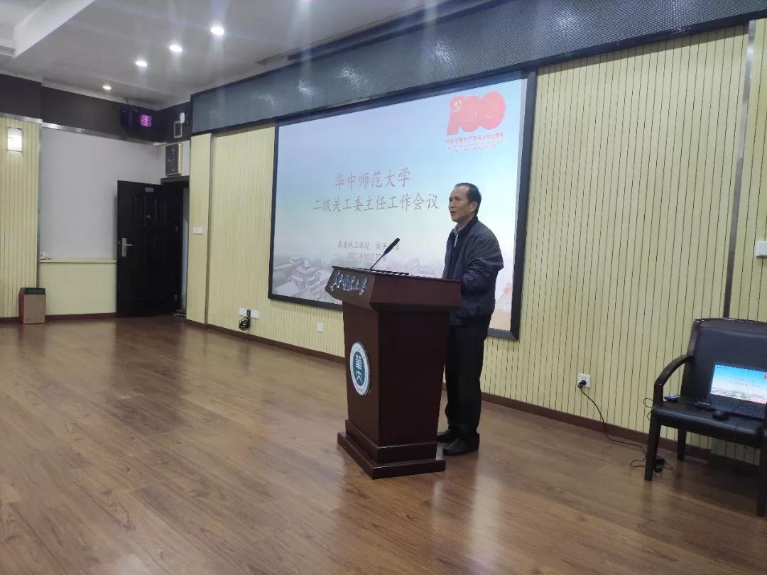 10月22日,华中师范大学二级关工委工作会议在行政楼二楼会议室召开。关工委常务副主任谭根稳、关工委副主任朱斌、离退休工作处处长何小红、关工委办公室主任曾爱华等出席,各二级关工委负责人参加。