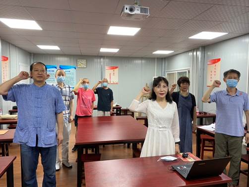 支部书记何小红带领大家重温入党誓词后,宣读了组织部下发的《关于开展好7月份支部主题党日活动的通知》。李赤兵老师领学了《习近平总书记在庆祝中国共产党成立100周年大会上的重要讲话精神》,徐北峰老师领学《中央教育工作领导小组印发的关于深入学习宣传贯彻党的教育方针的通知》。